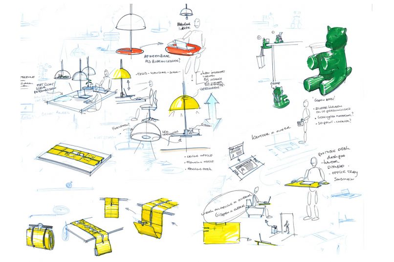 Het traditionele kantoor met vaste werkplekken verdwijnt langzaam. Het maakt plaats voor kantoorinrichting gebaseerd op het nieuwe werken. Concreet betekent dit dat een kantoor meer een ontmoetingsplek wordt en iedereen zelf bepaalt waar en wanneer er gewerkt wordt. Gispen verkoopt hierdoor minder producten rondom de werkplek zoals ladeblokken, CPU houders e.d. Iedereen neemt immers zelf zijn laptop mee en heeft alleen maar een stoel en een tafel nodig om te werken. Tegen deze achtergrond gaf Gispen opdracht om een nieuw product te ontwikkelen voor rondom de werkplek. Het uiteindelijke resultaat is een productlijn met een slimme band die aan elk formaat tafel te bevestigen is. Aan deze band kunnen diverse accessoires bevestigd worden. Zoals verschuifbare scheidingselementjes waarmee je grote werktafels kunt veranderen in een spannend werklandschap.